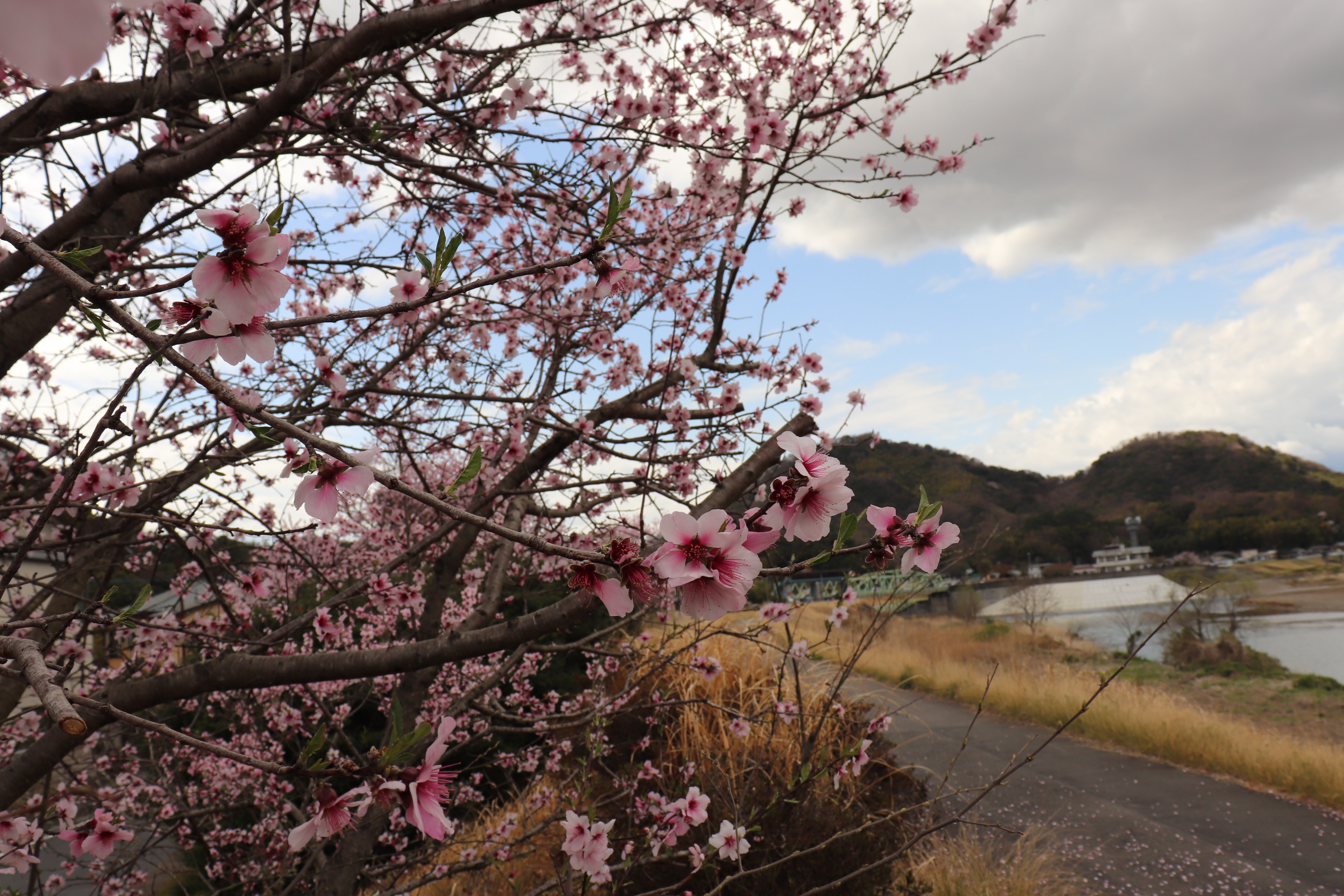 古奈の狩野川堤防にあるアーモンドの木です。