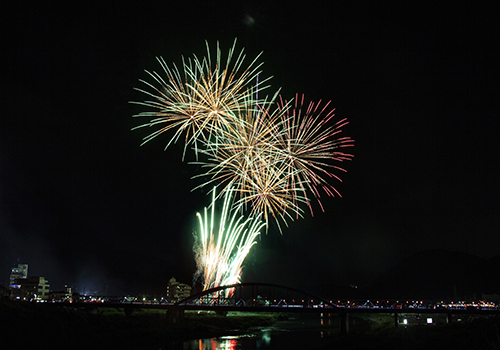 伊豆の国市の夏の風物詩、「伊豆の国花火大会」が開催されました。今年は従来の韮山狩野川まつり、伊豆長岡温泉戦国花火大会が統合され、8月1日の「きにゃんね大仁夏祭り」、8月3日の「伊豆長岡温泉花火大会狩野川まつり」の2日間開催となりました。花火大会には多くの人たちが訪れ、かき氷やたこ焼きなどの出店や、音楽に合わせて花火が打ち上げられる迫力満点のデジタルスターマインなど、花火大会を満喫していました。