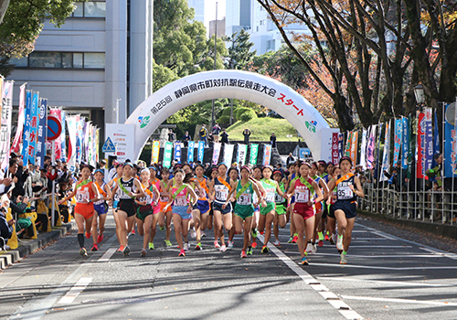 第25回しずおか市町対抗駅伝が静岡市で開催されました。県内の35市町から37チームが参加し、スタートの県庁前からゴールの草薙陸上競技場まで、12区間全42.195kmのコースを駆け抜けました。伊豆の国市は、市の部15位でフィニッシュ。前回大会よりタイムの上げ幅が伸長した市の部上位3チーム、町の部2チームに授与される敢闘賞を受賞しました。また、9区を走った三橋秀虎選手(韮山南小6年)が伊豆の国市初となる区間賞を獲得しました。選手たちは、郷土の誇りを胸に、力強い走りを見せていました。
