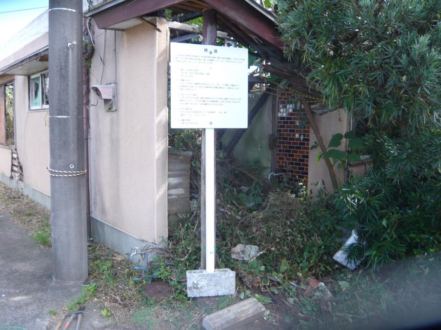 空家等対策の推進に関する特別措置法(平成26年法律第127号)第14条第3項の規定に基づき、このまま放置すれば建築物の倒壊等著しく保安上危険な下記の特定空家等の所有者に対し、措置をとることを命じました。